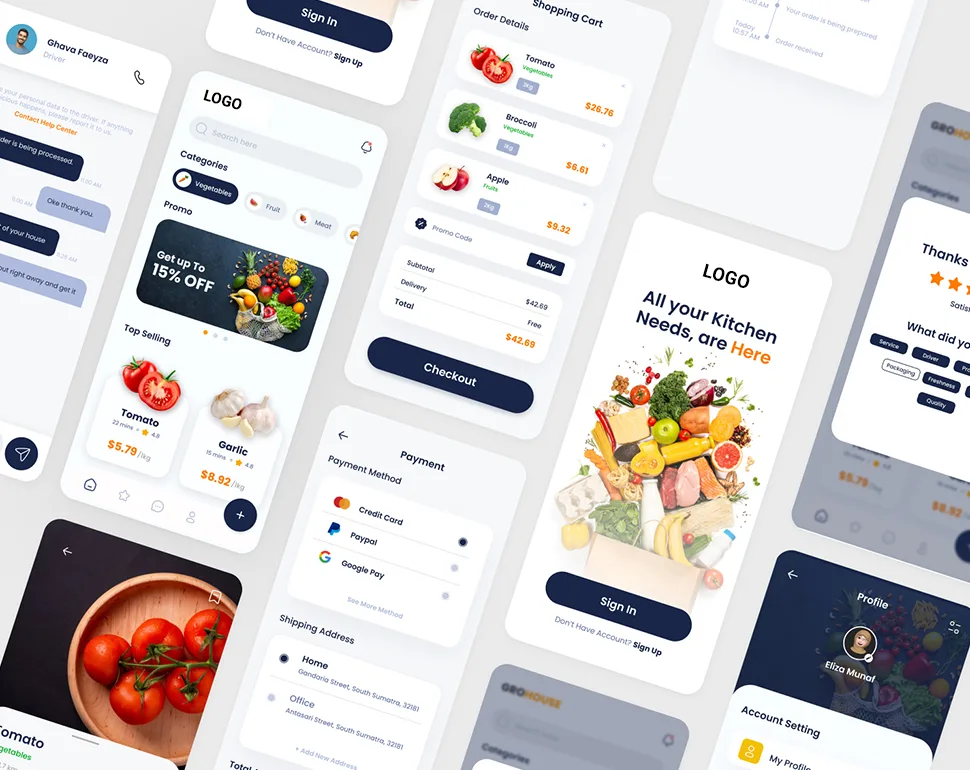 - Fresh vegetables and fruit delivery services.