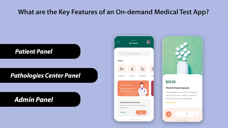 An On-demand Medical Test App generally consists of three main panels. Patient Panel, Pathologies centre panel and Admin Panel: