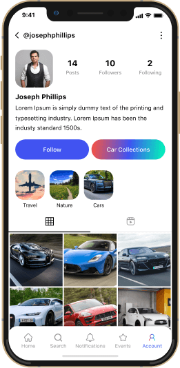 A social media app enables users to connect, share, engage, and grow their online presence — all from their smartphones.