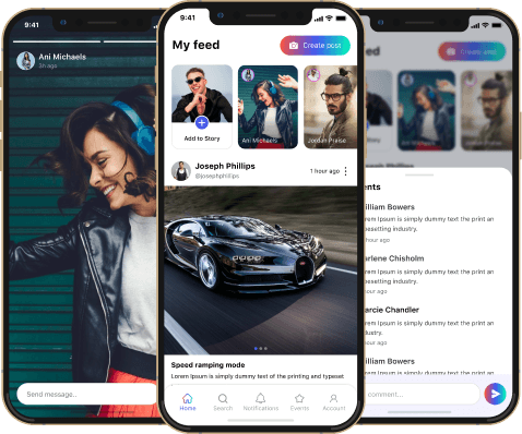 We offer end-to-end social media app development, including custom features, UX/UI design, backend development, testing, and maintenance.